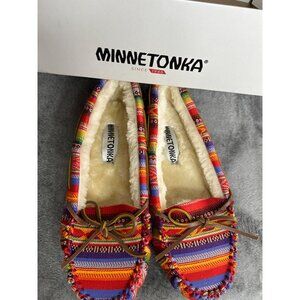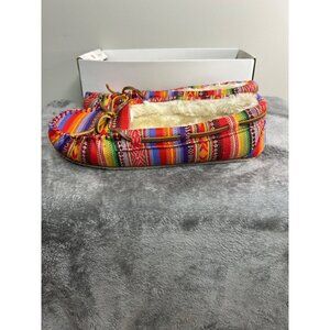 Minnetonka Cally moccasin slipper fresco striped multicolor NIB sz 8M