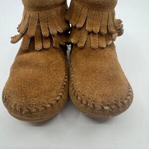 Minnetonka Double Fringe Side Zip Bootie Brown Suede Leather Little Kids US 5