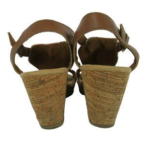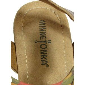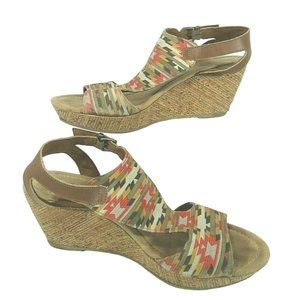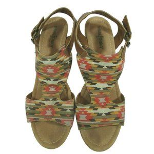 Minnetonka Duffy Women’s Cork Wedge Leather Buckle Sandals Tribal Aztec Size 10