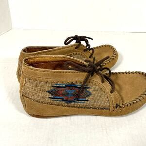 Minnetonka El Paso II Chukka Boot Tan Brown Southwestern Suede Leather Boot Sz 5