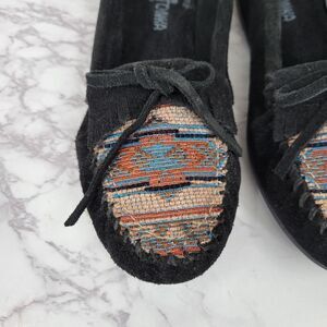 Minnetonka El Paso II Suede MOC Black Moccasins Aztec Patten Women's 7.5