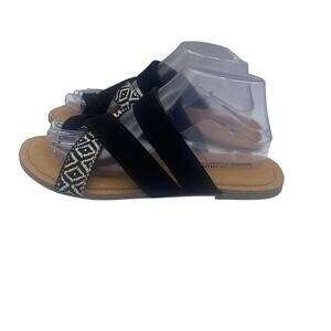 Minnetonka Faribee Strappy Sandals Black White Foam Comfort Womens 9