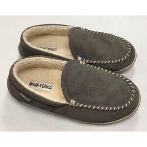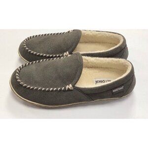 Minnetonka Fleece Lined Hardsole Moccasin Slippers Mens Sz 12 Gray Suede 🩶