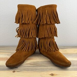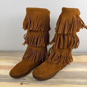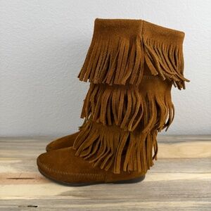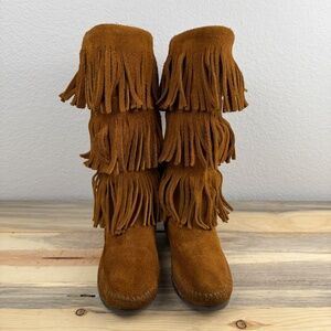 Minnetonka Fringe Boot 3 Layer Suede Brown Size 5 Costal Cowgirl Festival Ranch