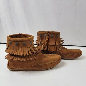 Minnetonka Fringe Moccasin Boots – Brown Suede | Size 7 | Very Good Condition