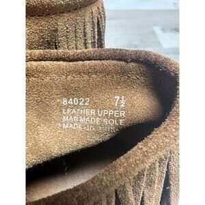 Minnetonka Fringe Wedge Boots 7.5 Tan Suede Boho Festival Retro Western Y2K