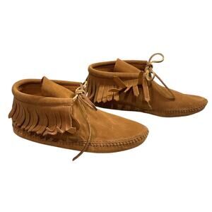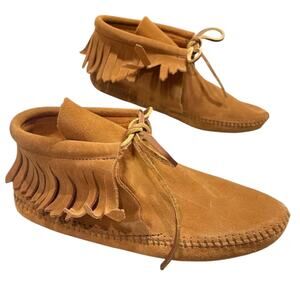 Minnetonka Fringed Softsole Moccasin Boots Suede Size 7.5