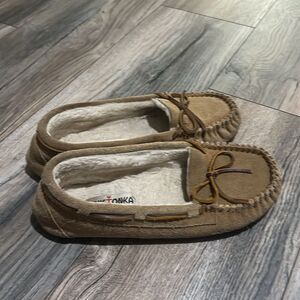 Minnetonka Fuzzy Slip On Leather Suede Brown Moccasins Women's 8