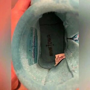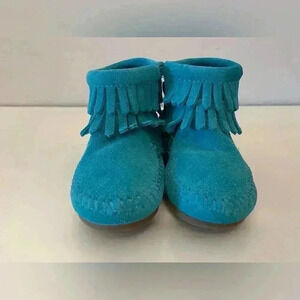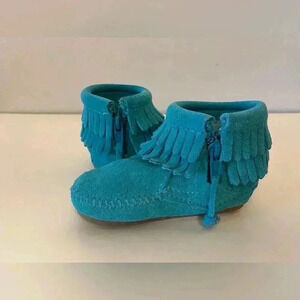 Minnetonka Girl’s Blue Suede Fringe Zipper Boots Size 4.