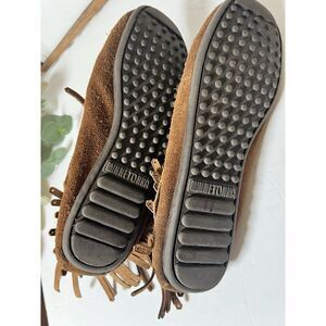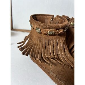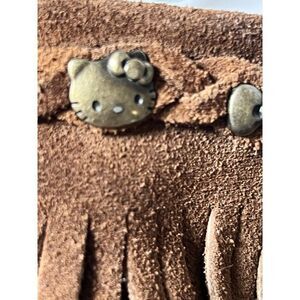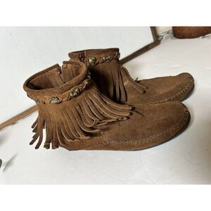 Minnetonka Hello Kitty Ankle Boot Moccasins Fringe Genuine Suede Brown Sz 7