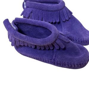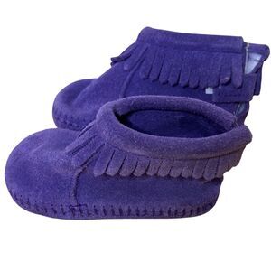 Minnetonka Infant Suede Fringe Moccasins Booties Shoes Girl Purple 3 bv