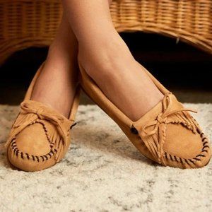Minnetonka Kilty Deerskin Fringe Soft Sole Moccasins Slip On