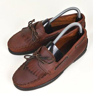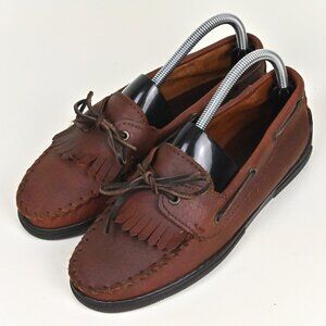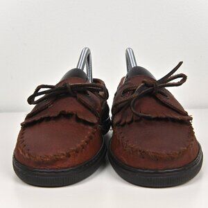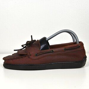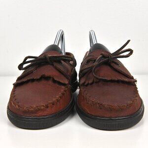 Minnetonka Kilty Leather Moosehide Tassel Stitched Red Moccasins Loafers US7 UK5