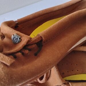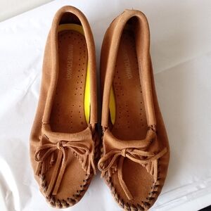 Minnetonka Kilty Plus Moccasins Leather Suede Women Size 9.5 Hard Sole Slip On
