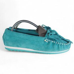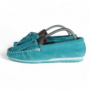 Minnetonka Kilty Suede Slip-on Moccasins Women's 7 Turquoise