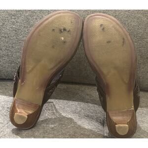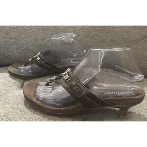 The Minnetonka Kitten Heel Sandals in size 7.5 are a stylish and comfortable option for women. Featuring a brown leather upper, a kitten heel, and a slide style design, these sandals are perfect for everyday wear. With the reputable Minnetonka brand name, you can trust that these sandals will provide both quality and fashion-forward style to any outfit. Perfect for adding a touch of sophistication to your wardrobe, these sandals are a must-have for any fashion-forward woman.
