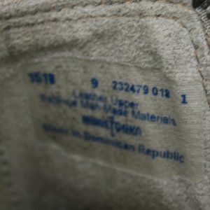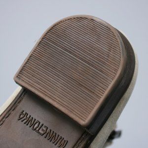 Here is a pair of ladies Minnetonka suede leather twin two-side-zipper ankle boots.