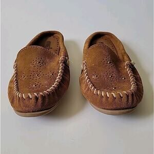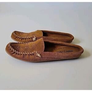 Minnetonka Leila Studded Suede Moccasin Mules Brown 7.5 Bohemian Comfy Hippie