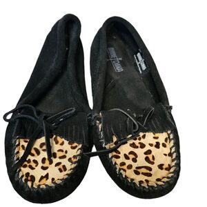 Minnetonka Leopard Moccasins Calf Hair Slip On 6.5