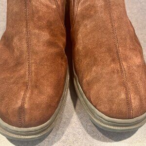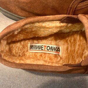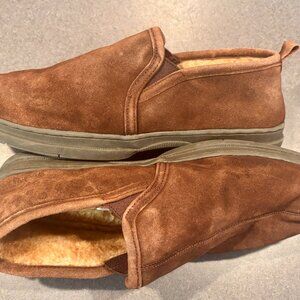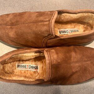Minnetonka Mens 11 Brown Leather Sherpa lined Slippers
