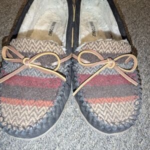 I only wore these a couple times inside, women's size 10. They are Sherpa lined and great for fall and winter.