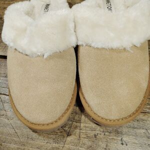 Minnetonka Moccasin 10M Slippers Shoes Suede Tan Slide Faux Fur 40811