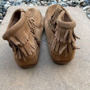 Minnetonka Moccasin Boots Leather Suede Side Zip Brown Size 4 youth