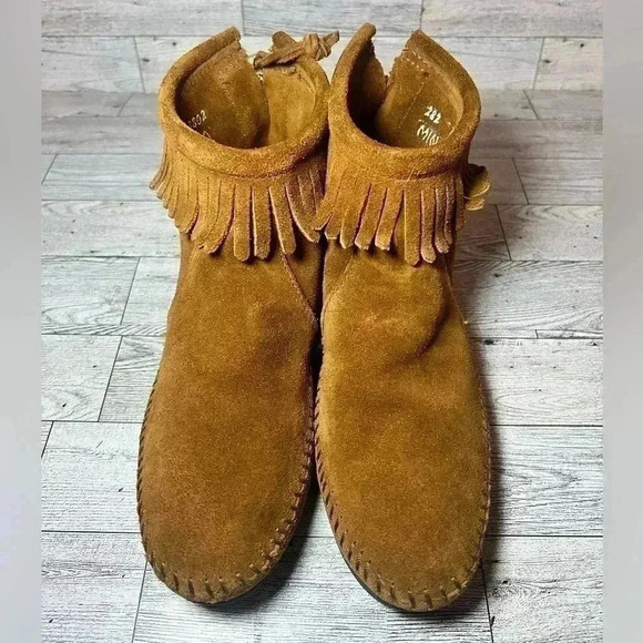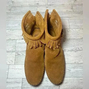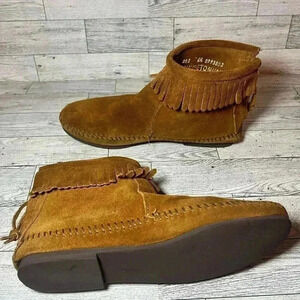 Minnetonka Moccasin Brown Suede leather Fringe Booties womens 6.5 boho babe