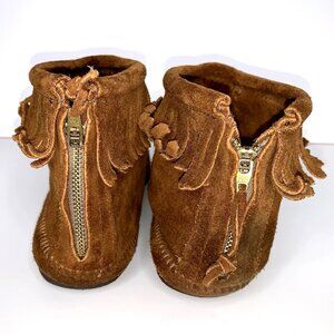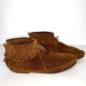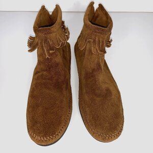 Minnetonka Moccasin Fringe Suede Booties Women Size 9 Style 282 with a Zipper Back Closure!