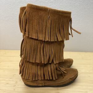 Minnetonka Moccasin Womens Size 6 Brown Three Layered Fringe Suede Boots