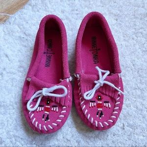 Minnetonka Moccasins 2605 - Childrens Thunderbird Moccasin - Hot Pink Suede
