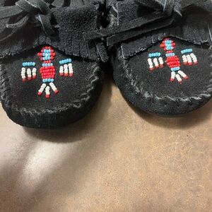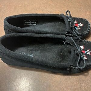 Minnetonka Moccasins Black and Red Slip-On Comfort