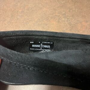 Step into comfort with Minnetonka's black and red moccasins, designed for effortless style and ease. These slip-on shoes feature a soft, durable material and a flat sole, perfect for everyday wear. The subtle red accents add a unique touch to their classic design.
