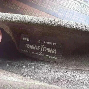 These soft leather moccasins are a grayish tan color and so pretty. They are the Kitty Hardsole in Gray, style 401T, sold for $57.95 on Minnetonka's website. They have a rubber sole and have only been worn a couple of times. They are in good shape with one flaw on the back of the shoe shown in the photos. Size 9 women's. I feel they run a little big- definitely closer to a 9.5.