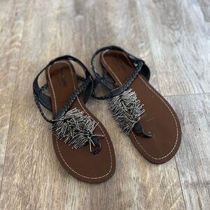 Minnetonka Moccasins Metallic Fringe Thong Leather Sandals