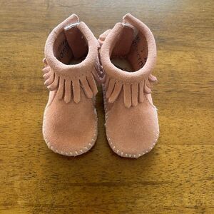 Minnetonka Moccasins boots pale pink rose baby girl size 2