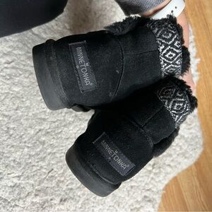 Minnetonka Moccassins Aztec Middleton Black Leather Sheepskin Boots Size 6
