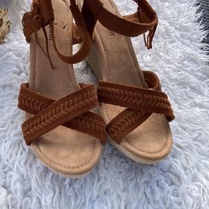 Super cute wedge sandals. In Excellent preowned condition minor wear nothing major at all lots of life left in these cute wedge sandals