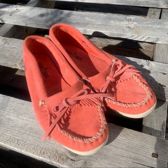 Minnetonka Newport Melon suede leather moccasins size 8.5