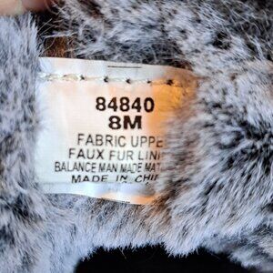 Black Minnetonka Northtown Boots with grey faux fur lining. Features a water-resistant nylon upper with a quilted design, faux fur lining for warmth, and a treaded EVA sole for traction. Stylish and great for outdoor activities in various weather conditions. Size 8M. Nice pre-loved condition.