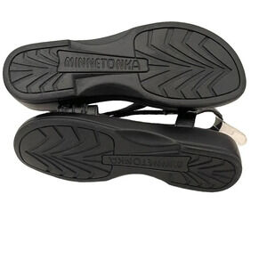Minnetonka Womens Open Toe Leather Sandal Size 8 Black 799972