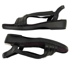 Minnetonka Open Toe Leather Sandal Size 8 Black Comfort 799972
