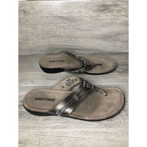 Selling Minnetonka Pewter Silver Silverthorne Filp Flop Thong Sandals Women Sz 10M US/41EU
