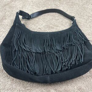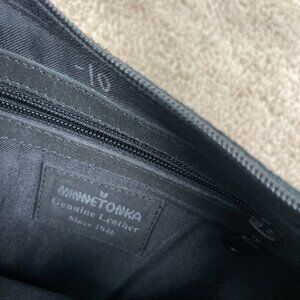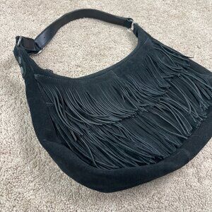 Minnetonka Purse Womens OS Black Fringe Leather Suede Tribal Bohemian Bikercore
