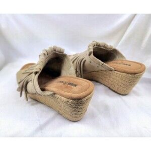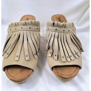 Minnetonka Quinn Suede Taupe Fringe Peep Toe Wedges Size Woman's 10