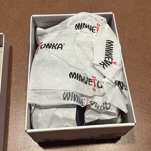 Minnetonka Riley bootie in purple. New in box. Never used. Soft heel.