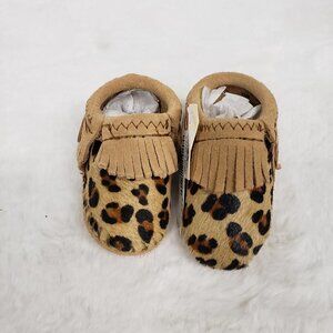 Minnetonka Riley Leopard Hair on Hide Baby Moccasins Size 1 NWT