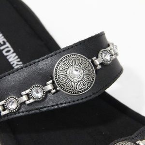 Minnetonka Sandals NEW sz 11 Women Black Leather Slide Western Shoes