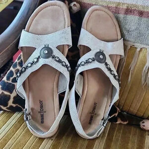 Minnetonka Selene Chain and Jewel Sandal 13M Snakeskin Creme