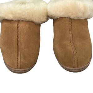 Minnetonka Sheepskin Mule Slippers - Tan suede leather - Women's Size 5